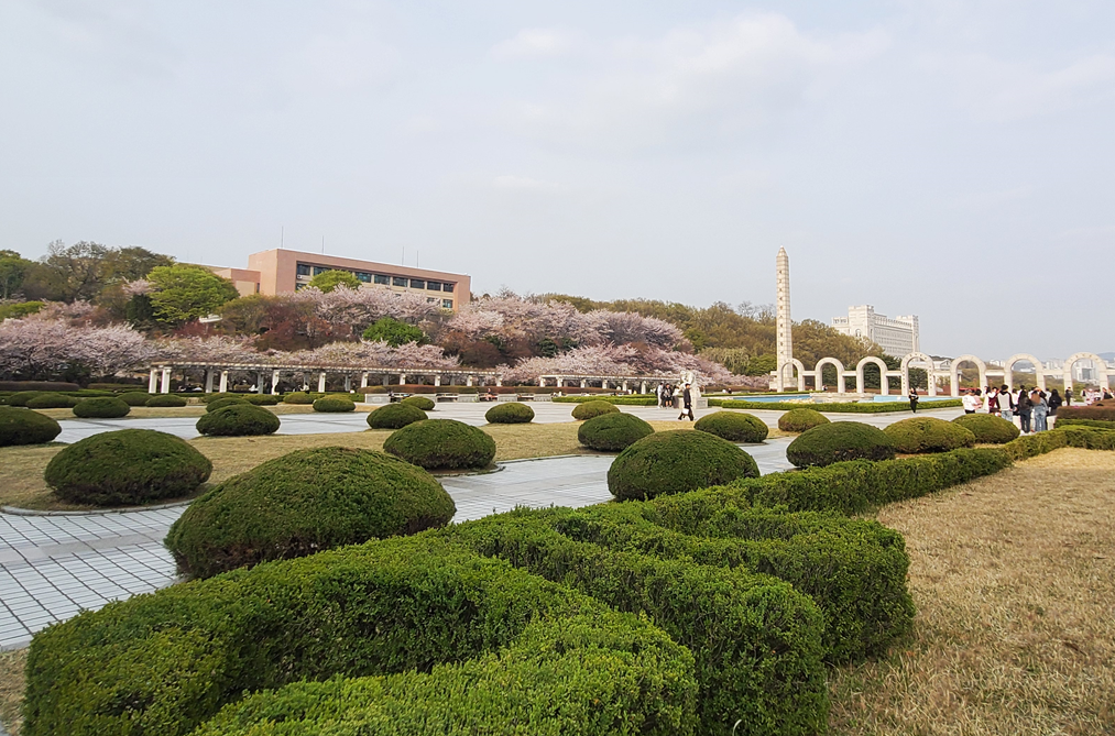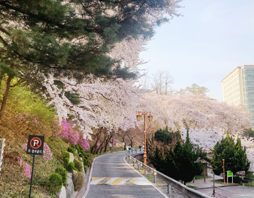 경희대학교 서울캠퍼스도 벚꽃명소로 유명하지만 경기도 용인에 위치한 경희대 국제캠퍼스 또한 아름다운 벚꽃풍경으로 전국에서 많은 분들이 찾아오는 벚꽃명소입니다. 4월 중순까지도 만개한 벚꽃을 즐길 수 있는 곳입니다.